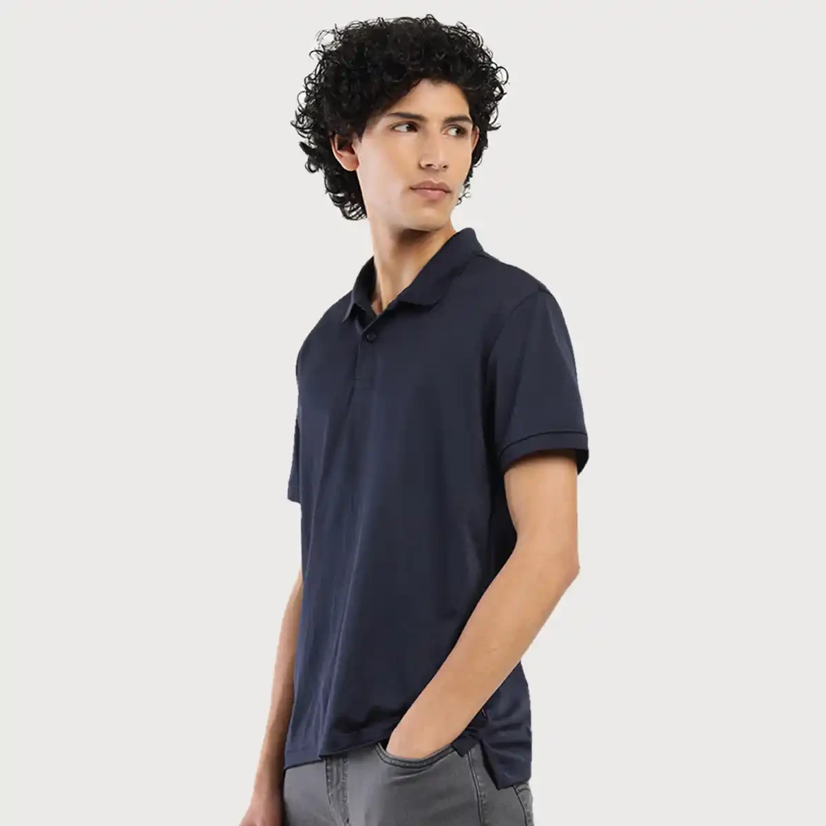 Classic polo design, durable polyester fabric, regular fit for comfort, navy blue color