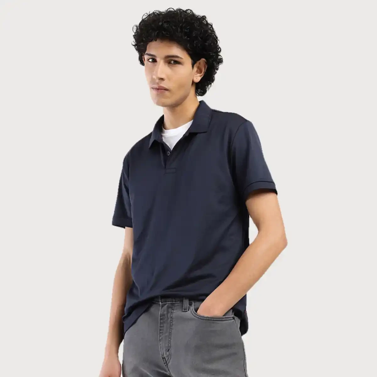 Classic polo design, durable polyester fabric, regular fit for comfort, navy blue color